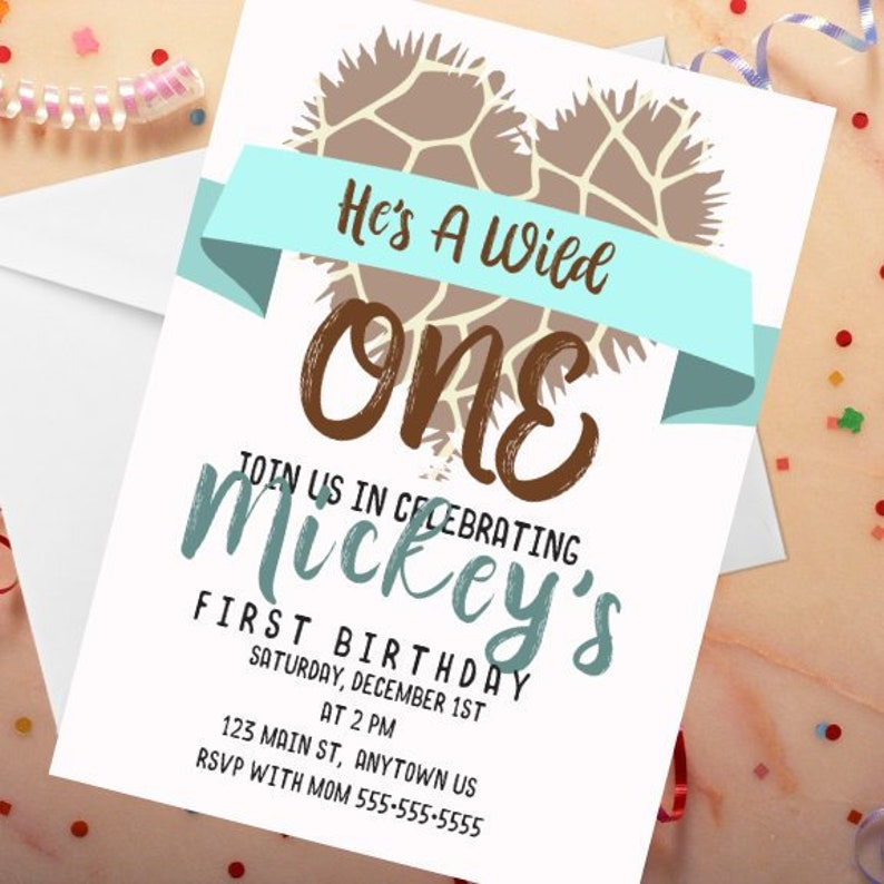 Boys Wild One First Birthday Invitation With Free Cupcake Etsy